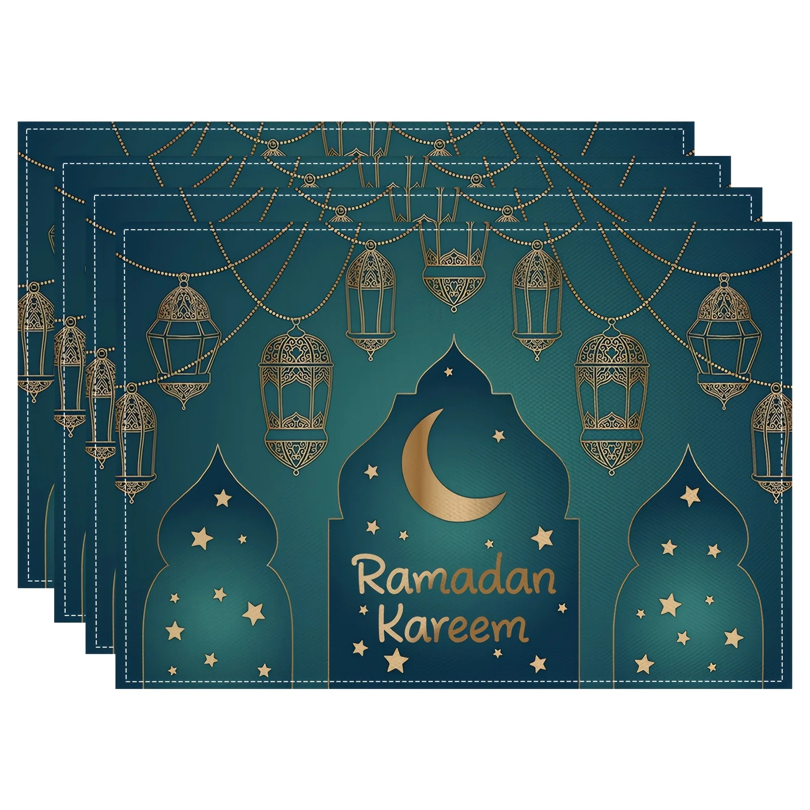 Ramadan Kareen Mubarak Placemats Table Decor Golden Moon Star Lantern Eid Al-Fitr Kitchen Dining Table Mats Ramadan Decorations