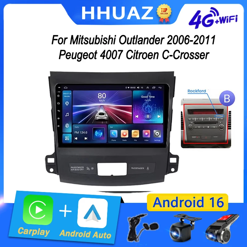 2 Din Android 16 Car Radio Multimedia Player For Mitsubishi Outlander 2006-2011 Peugeot 4007 Citroen C-Crosser Carplay Gps