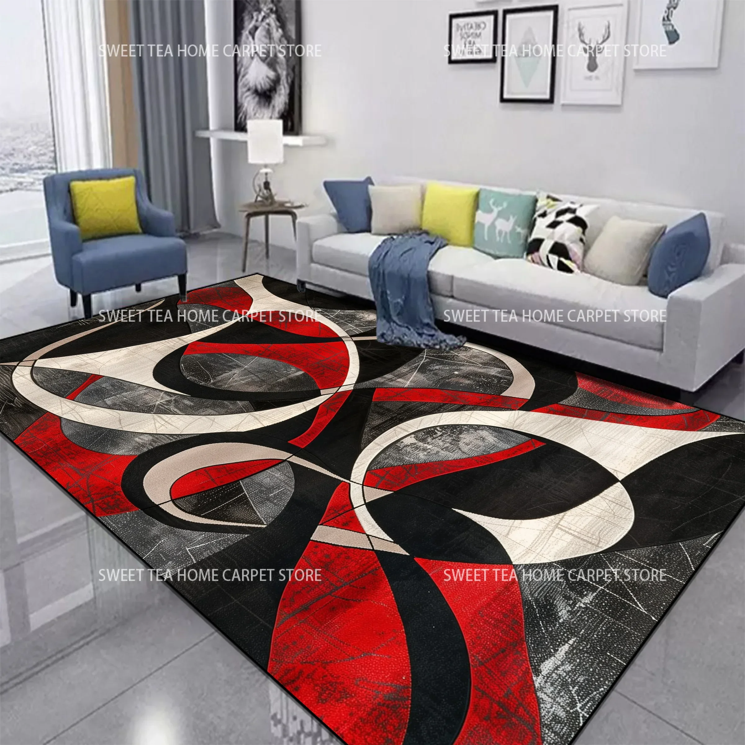 Red Black Swirl Rug Abstract Carpet for Living Room Large Bedroom Decoration Rug Light Luxury Sofa Coffee Table Mat Non-slip