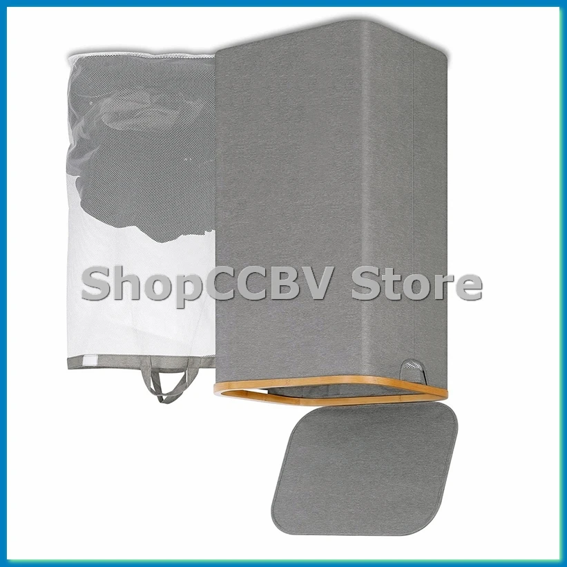 110L Laundry Hamper with Handle and Lid, Basket Organizer with Removable Inner Bag for Clothes Toys Grey-A57M