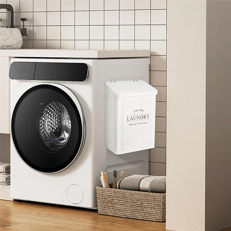 ABNO-Wall Mounted Lint Box For Dryer, Metal Lint Container With Lid And Brush Magnetic Lint Bin For Laundry Room