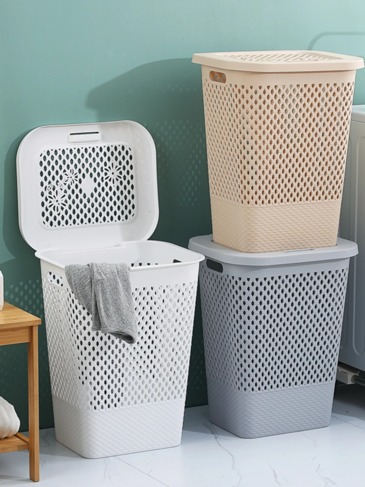 Plastic Laundry Hamper with Lid Dir Clothes Storage Basket Simple Home Use Waing Basket Toy Storage Bin Nordic Sle