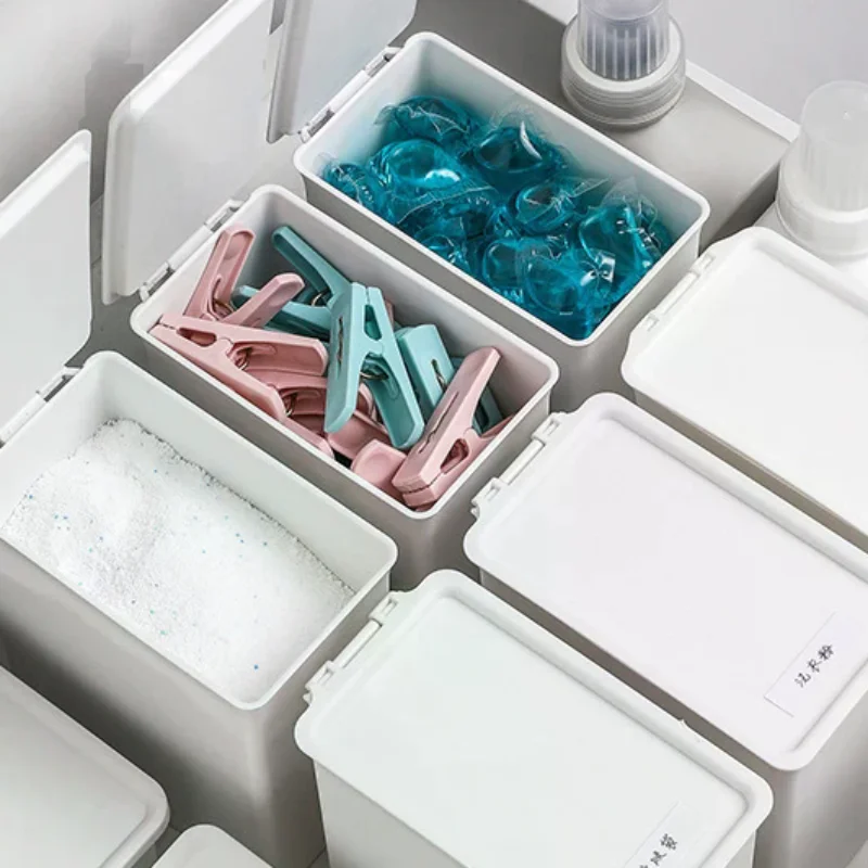 〔W〕Laundry Room Storage Box Scent Booster Laundry Beads Powder Container Clothes Clips Case with Dustproof Lid Organizer Box