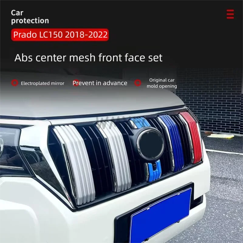 ABS Chrome Front Grille Grill Shinny Decoration Trims For Toyota Land Cruiser Prado LC150 2018 2019 2020 2021 2022 Accessories