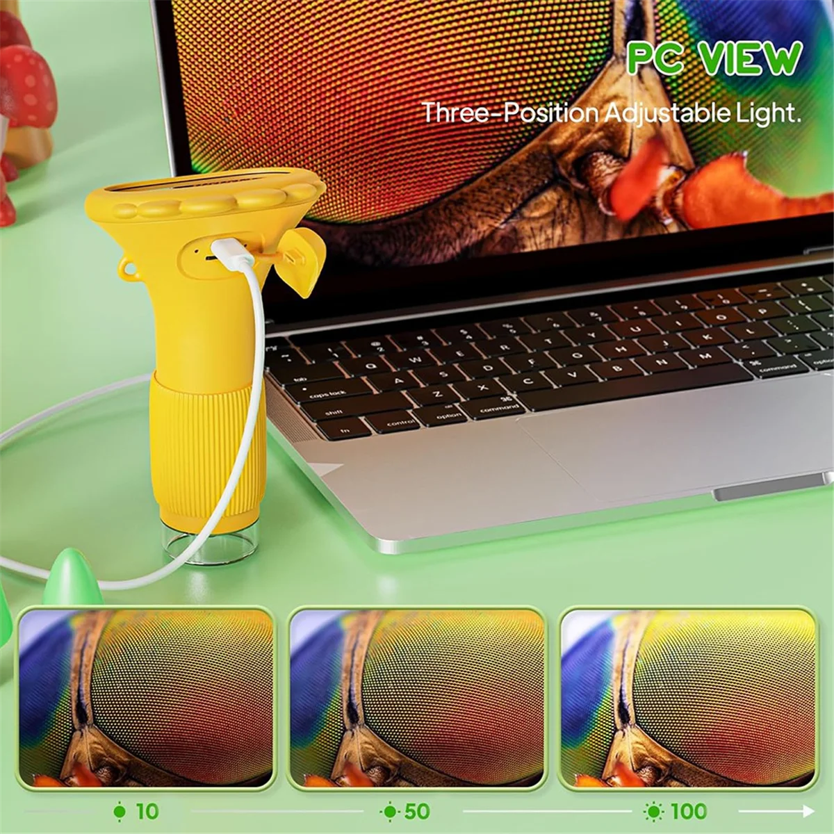 A06K Microscope for Kids Pocket Microscope for Children With 8 LEDs 50-1000x Digital Microscope With Adjustment Button