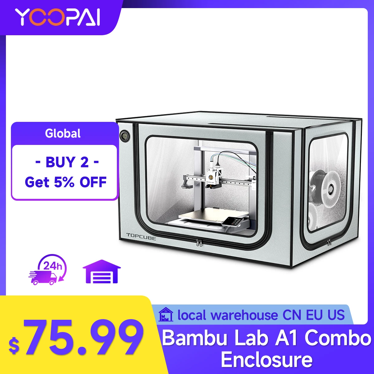 YOOPAI 3D Printer Enclosure For Bambu Lab A1/A1 mini Combo AMS Lite Top Mounting LED Light Fireproof Dustproof Noise Reduction