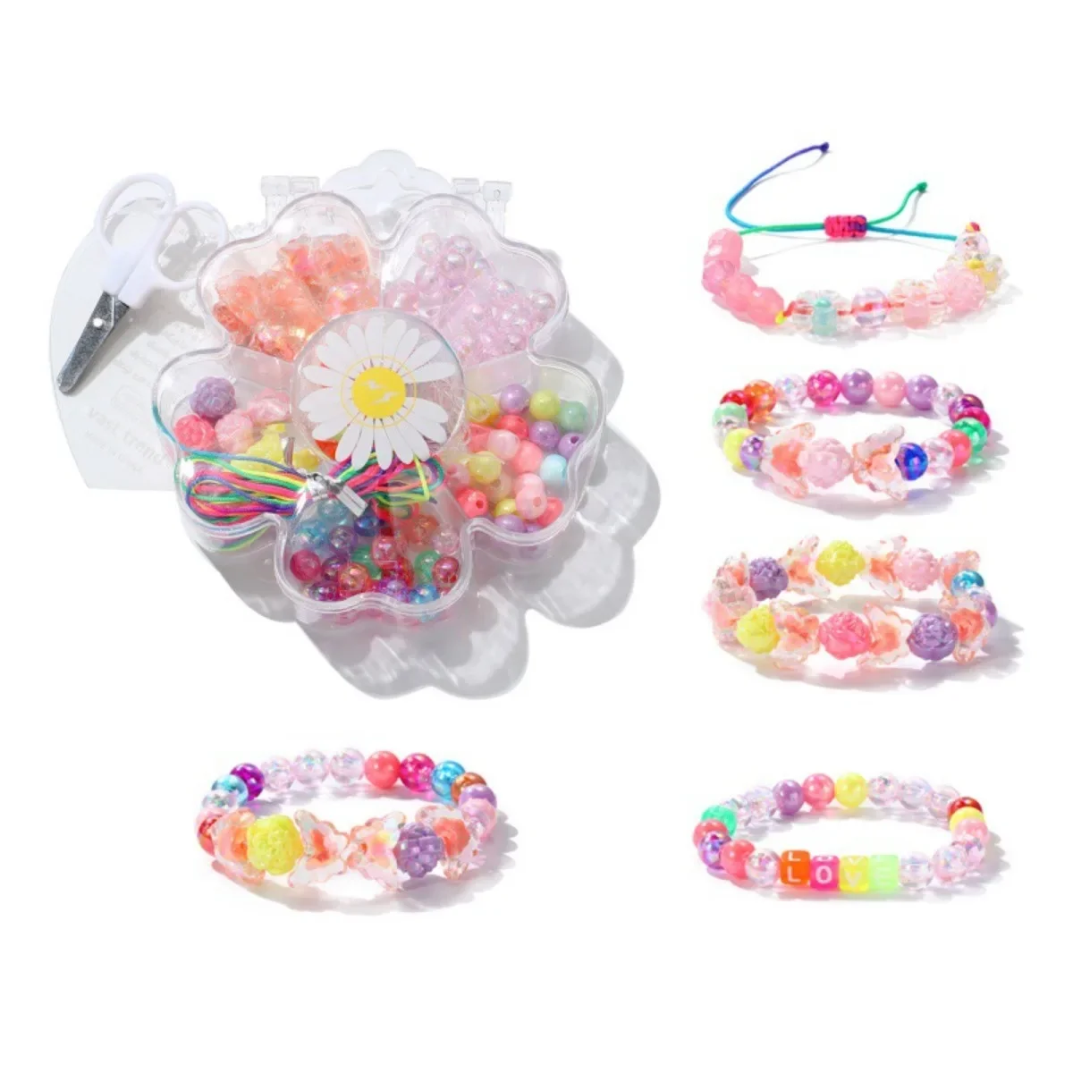 New DIY Beads Jewelry Set | Daisy Butterfly Rose Letter Loose Beads | Cute Handmade Bracelet Necklace Kit for Girls Gift New