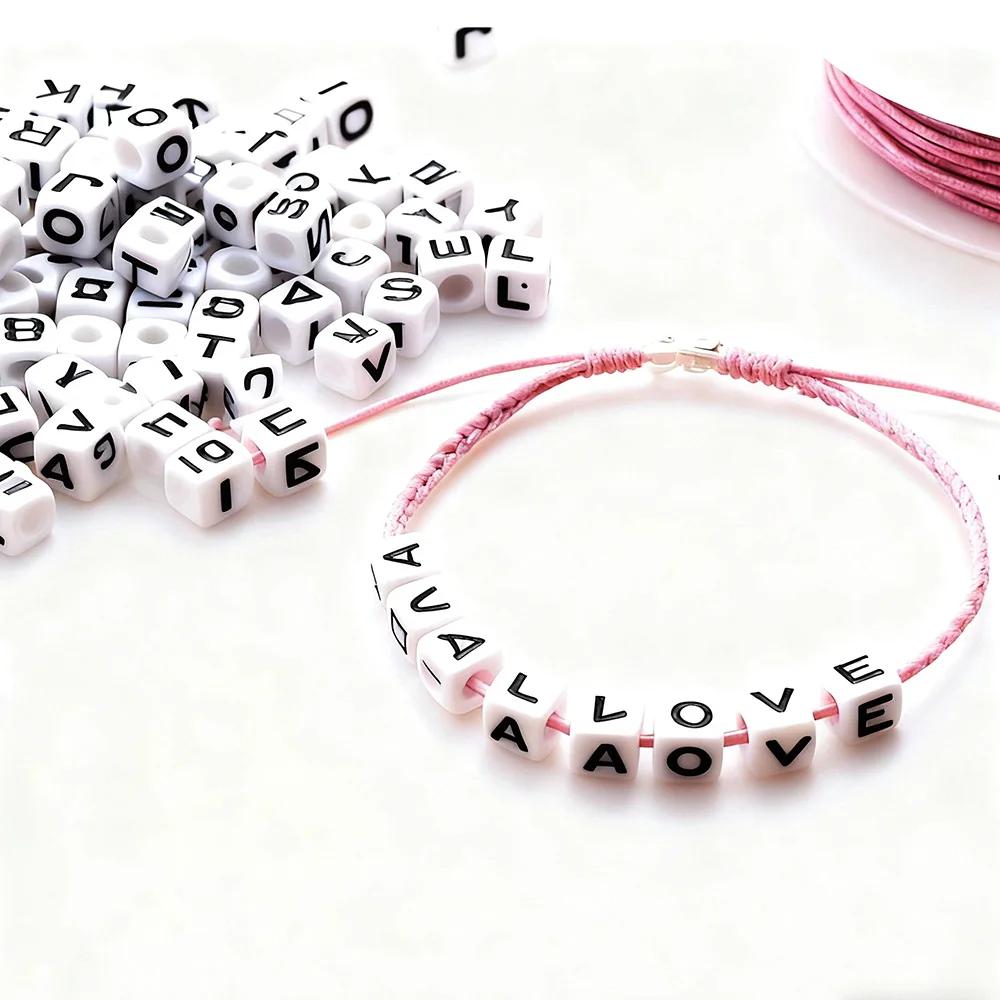 "A-Z" Letter 100PCS 6MM Acrylic Cube Loose Spacer Beads For Women's DIY Bracelet /Necklace Ear Jewelry Making Accessories