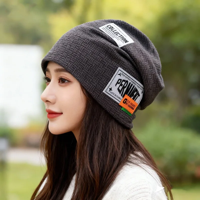 Hat Autumn and Winter Patch Letter Pullover Hat Men's and Women's Outdoor Warm Baotou Hat Plaid Letter Stacking Hat