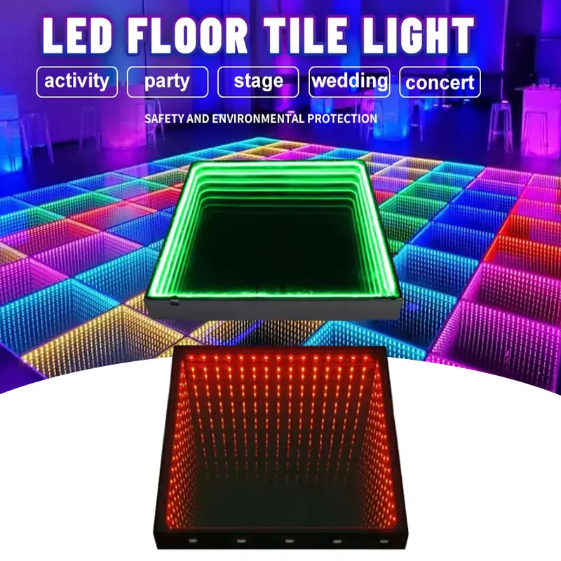 Butoy 3D Full Color Floor Light 0.5x0.5m Stage LED Dance Floor Lighting Mirror Abyss Tempered Glass LED Dancing Floor Tiles