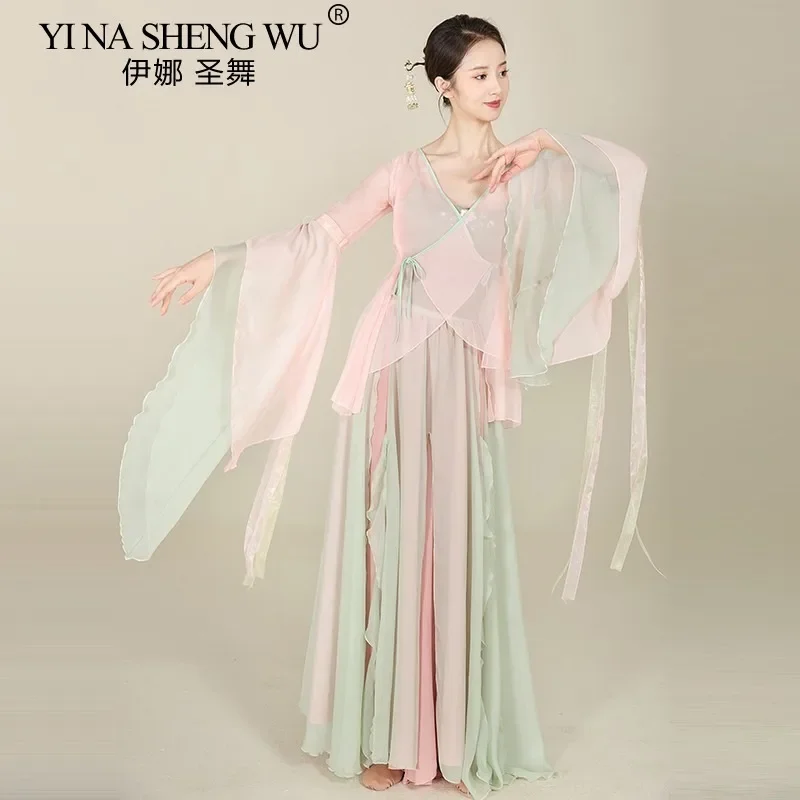 Classical Dance Dress Women Flowy Ethereal Sheer Top Chinese Modern Dance Training Outfit Performance Costume Adults Girls