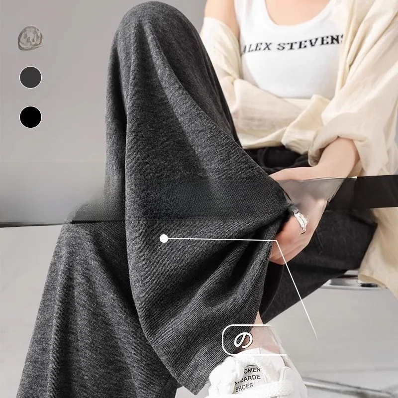 High Waist Wide Leg Pants Women's Fce Lined Loose Slimming Autumn Winter Sle Counter Rice Noodle Casual Straight Leg Pants