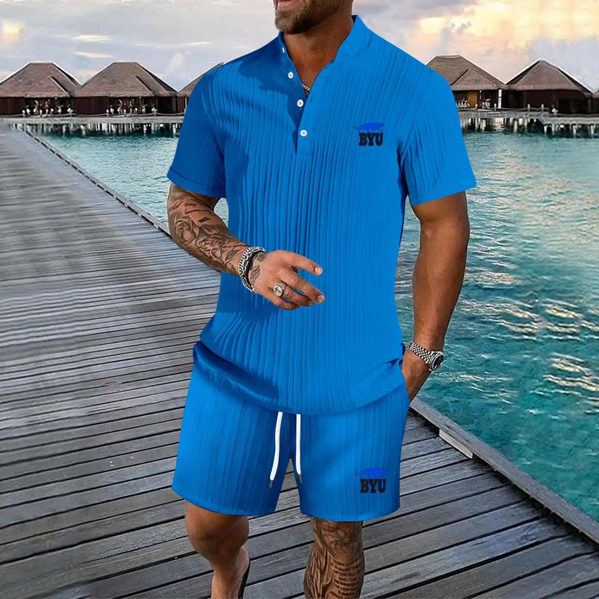 BYU Blue Panther Silhouette Bold Design Sticker/Decal, Dynamic Stalking Pose, Black Background with Bright Blue Outlined Lett