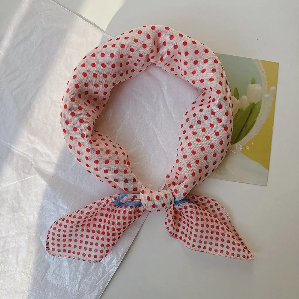55Cm Cotton and Linen Polka Dot Small Square Scarf Women's Korean Version of Foreign Versatile Headband Fashion Spring Autumn