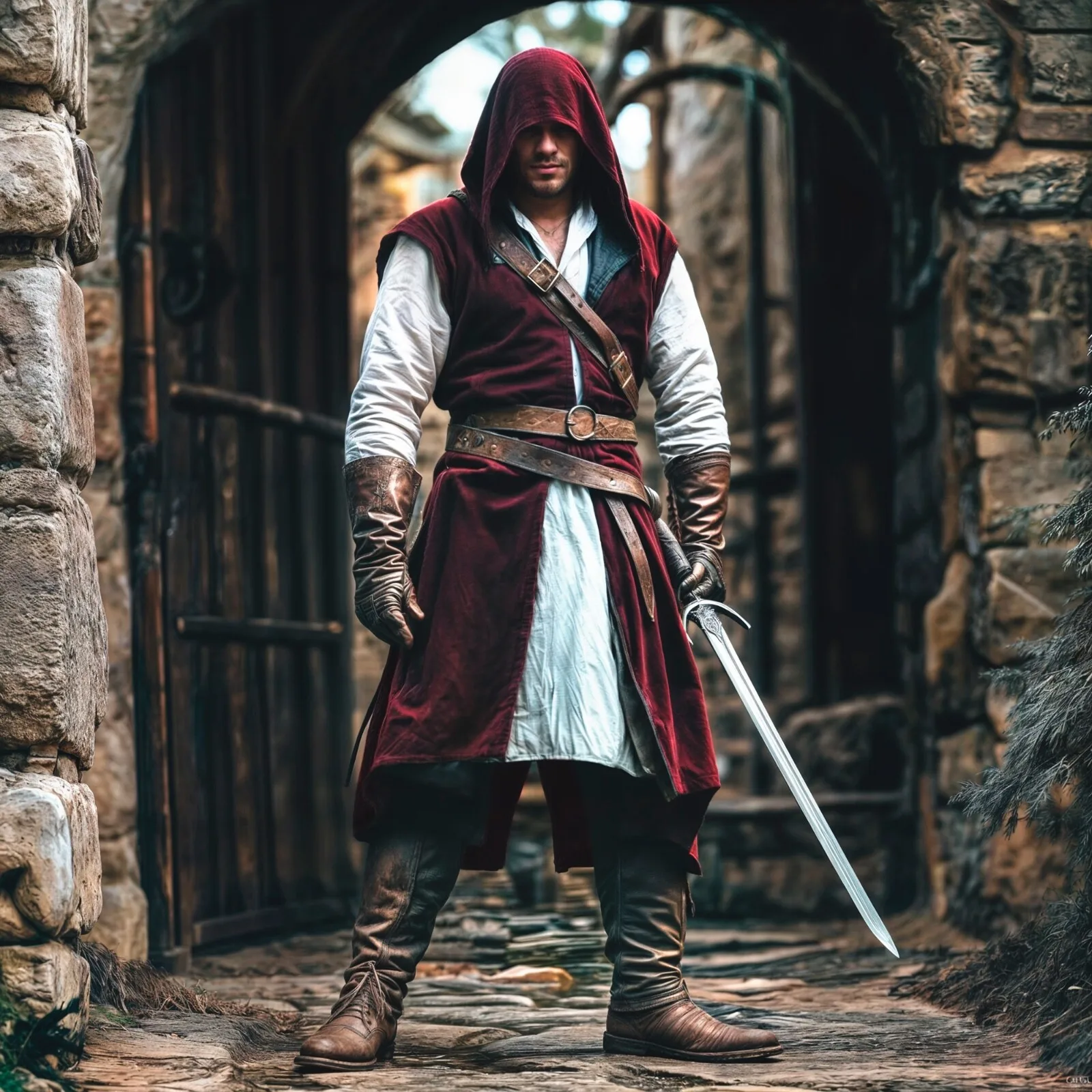 Medieval Mens Surcoat, Linen Hooded Tunic, Renfaire Cape, LARP Ranger Cosplay