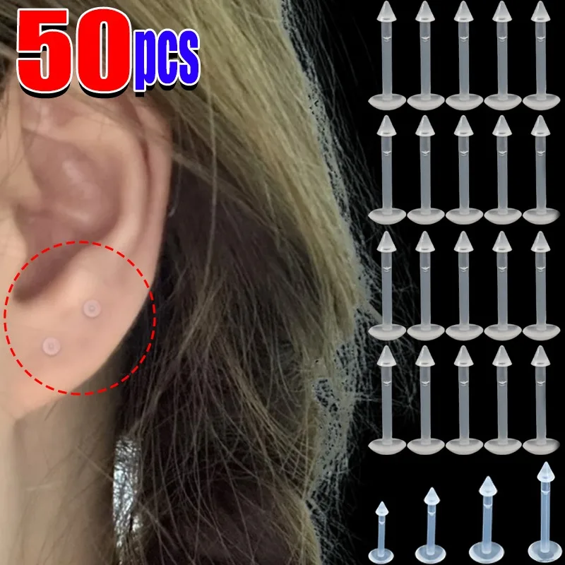 10-50Pcs Transparent Lip Studs Invisible Piercing Jewely Retainer Lip Ring Nose Tongue Body Jewely Accessories for Women Men