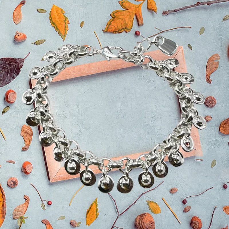 Jewelry Handmade Se Silver-Tone Layered Chain Bracelet with Dangle Disc Details & Heart Lock Charm