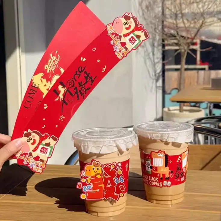 New Year Year Coffee Milk Tea Disposable ape Logo Printing Waterproof Heat Insulation Cup Cover Universal 3D ular