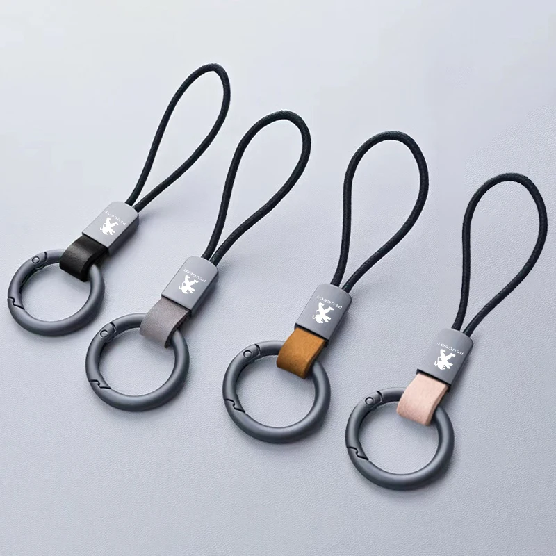 For Peugeot 208 3008 308 2008 207 107 508 607 106 406 Car Accessories Custom LOGO Braided Rope Keyring Metal Keychain
