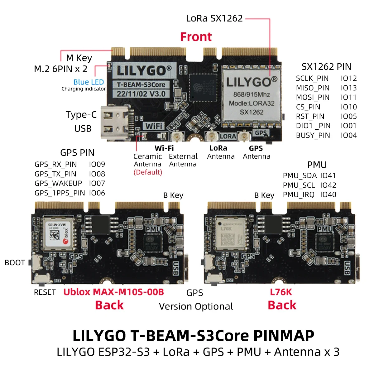 LILYGO T-BEAM-CORE V3.0 L76K UBLOX M10S-00B ESP32 Development Board with LoRa SX1262 868Mhz 915Mhz Module Operating System RTOS