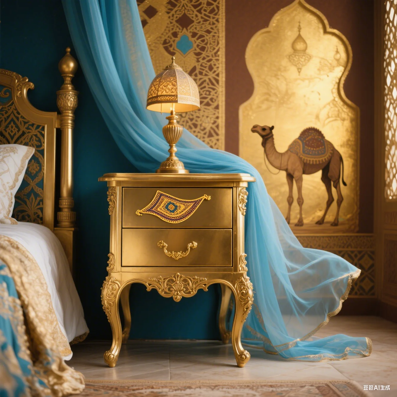 AOLIVIYA Champagne Style Bedside Table Wooden Nightstand With Drawer Lucite Storage Cabinet B38934