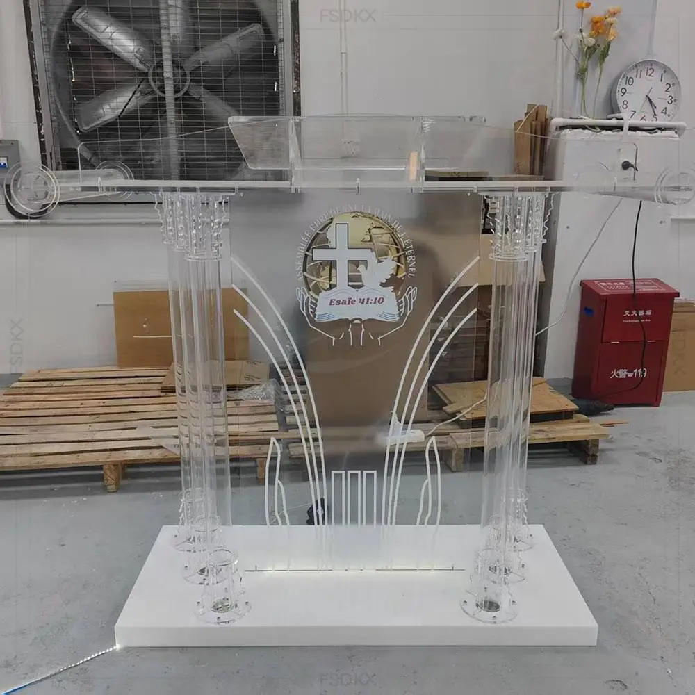 FSDKX Clear Podium Stand Acrylic Pulpit Lucite Church Lectern Transparent Welcome Podium