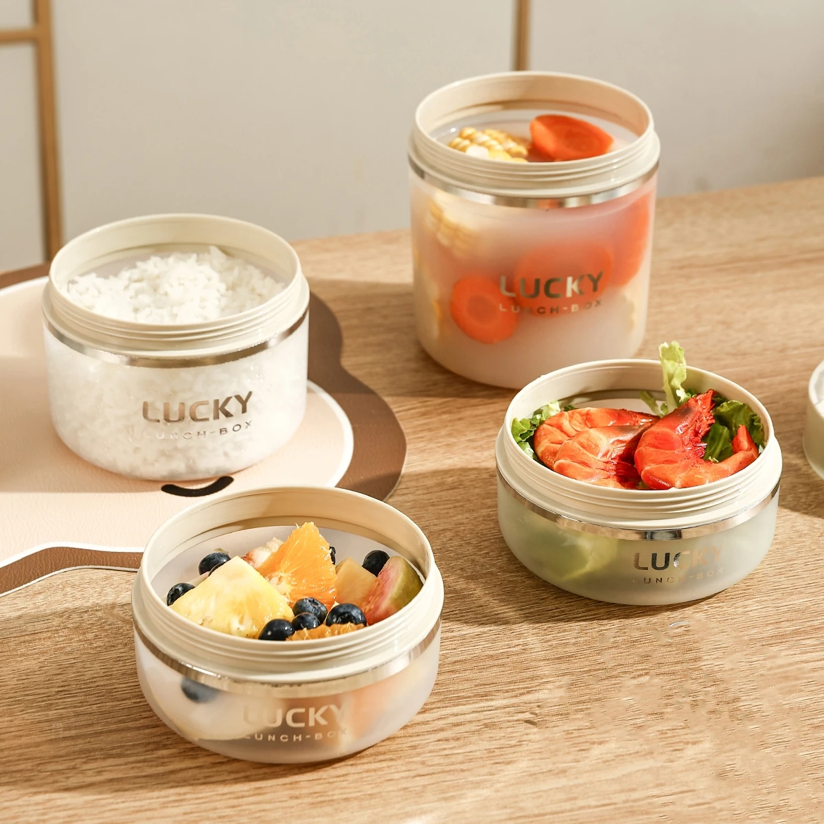 Portable Round Plastic Lunch Box With Folding Fork Spoon Microwave Safe Leak-proof Fruit Salad Food Container For Kids Students