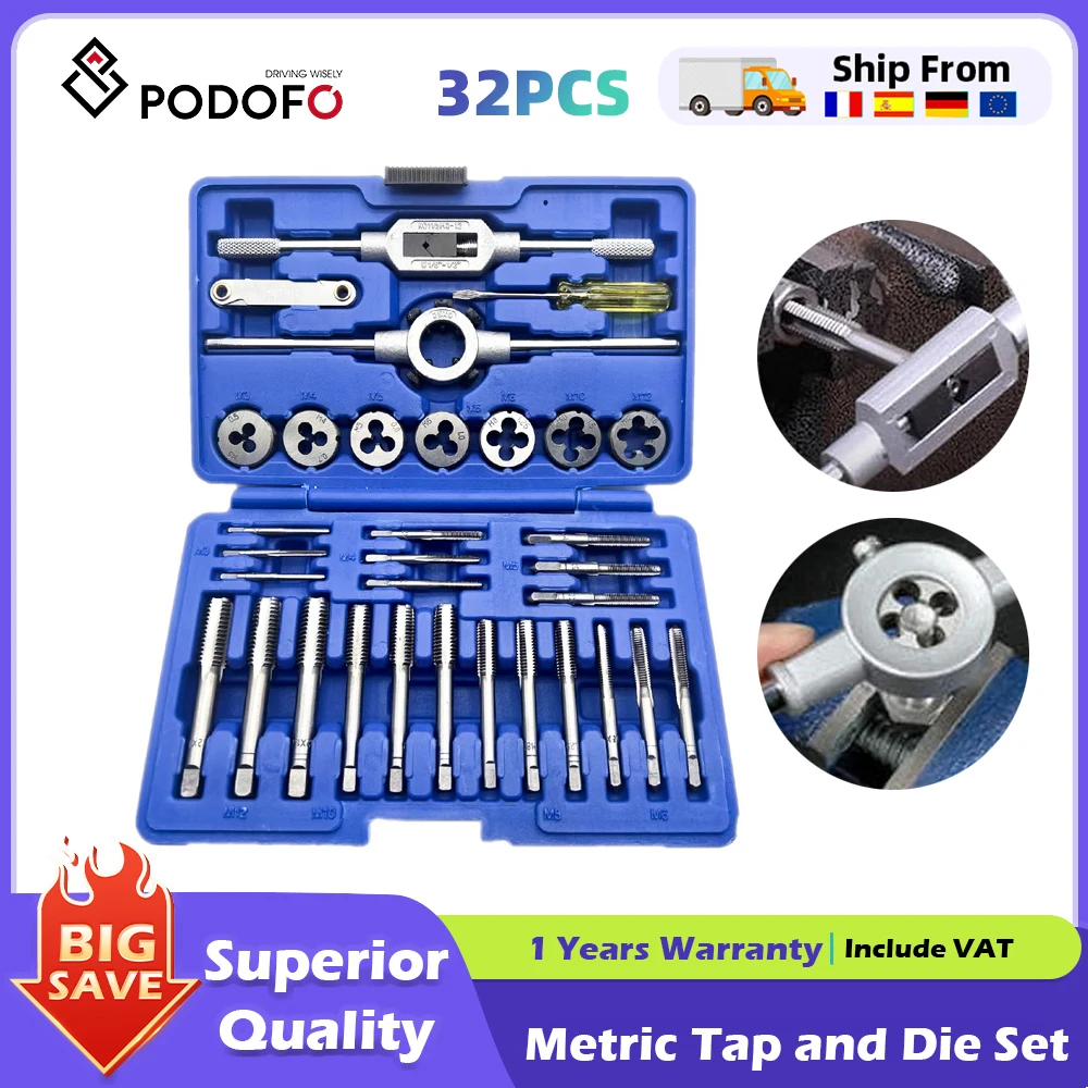 Podofo 32pcs Metric Tap and Die Set Includes M3-M12 Taps Screw Thread Making Tool M3-M12 Metric Wrench Cut with Storage Case