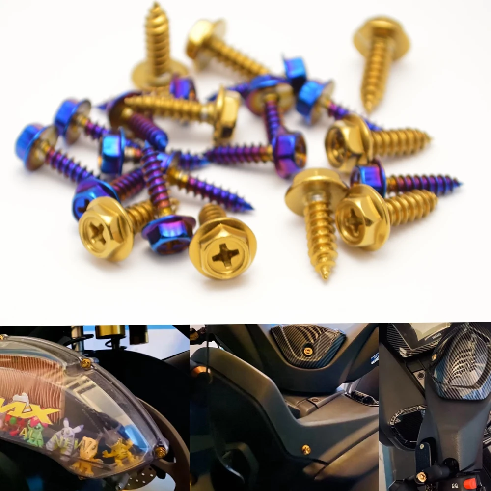 10Pcs Motorcycle Self-Tapping Screws M4/M5 Titanium Blue Gold Compatible with Kawasaki Yamaha BMW Ducati Honda KTM Suzuki