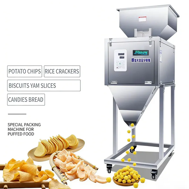 10g -100g potato chip weighing filling machine popcorn candy puffed food special quantitative weighing packaging machine