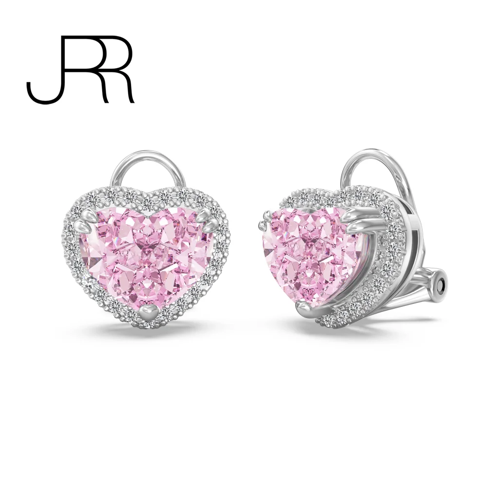 JRR New Pink Silver 925 Love Heart Earrings Created Diamond Magnetic Earring Wedding Woman Girls Jewelry Gift Freeshippings Item
