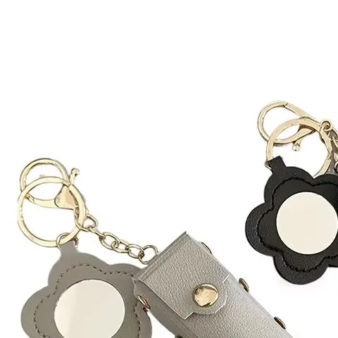 Custom Leather Lipstick Bag Protective Cover Keychain Portable Makeup Backpac Key Chain with Mini Flower Mirror Keyring Gift