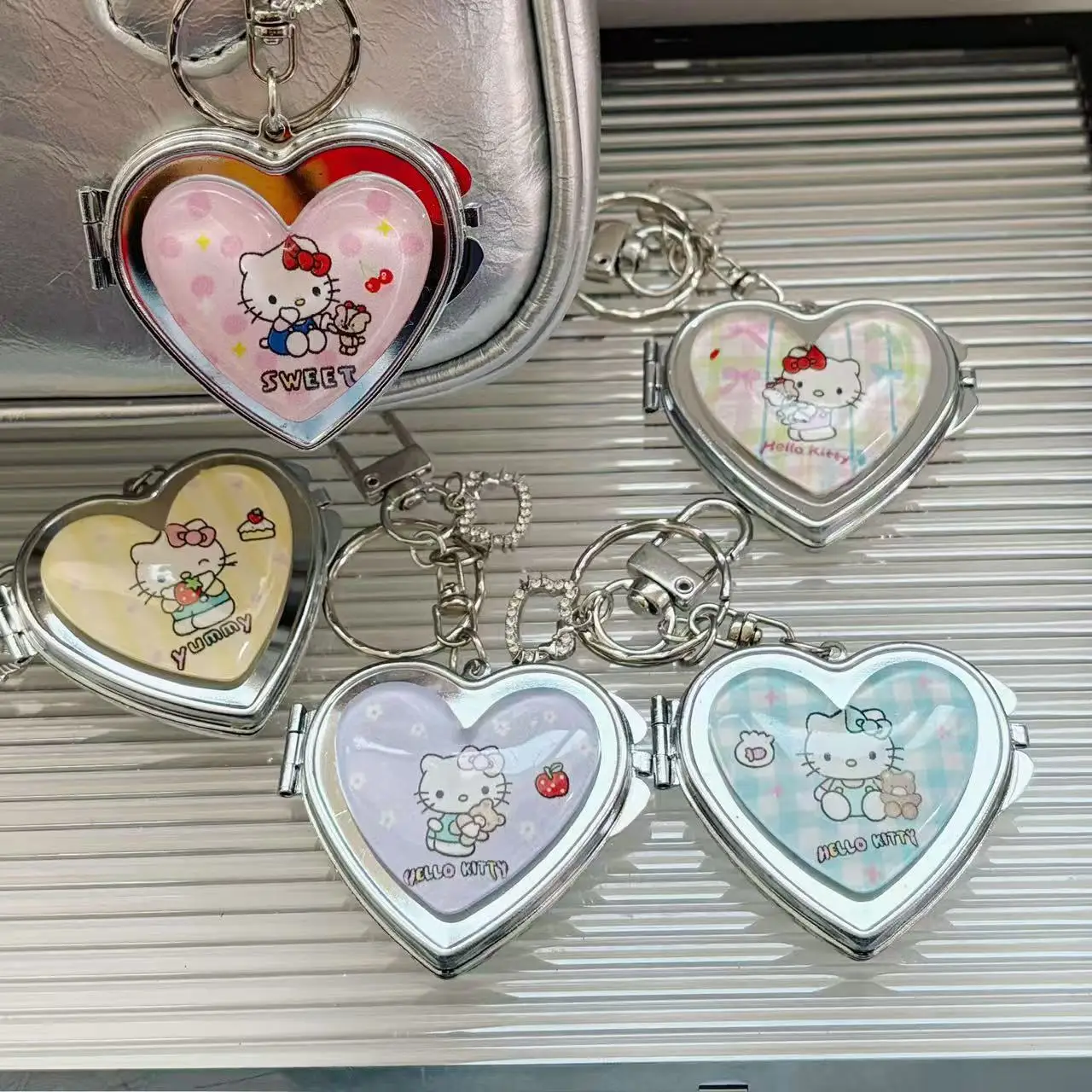 Hot-selling Ins Wind Cute Cartoon Kt Cat Love Portable Mirror Keychain Bag Pendant Makeup Mirror Portable Female