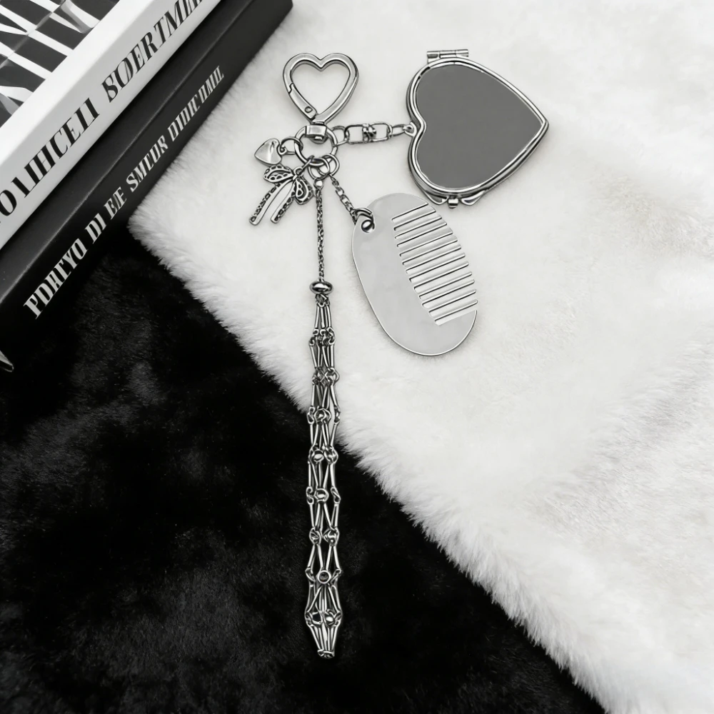 Custom Portable Packet Makeup Mirror Keychain Creative Leather Backpack Pendant Hangings Key Chain Ring Accessory Keyring Gift
