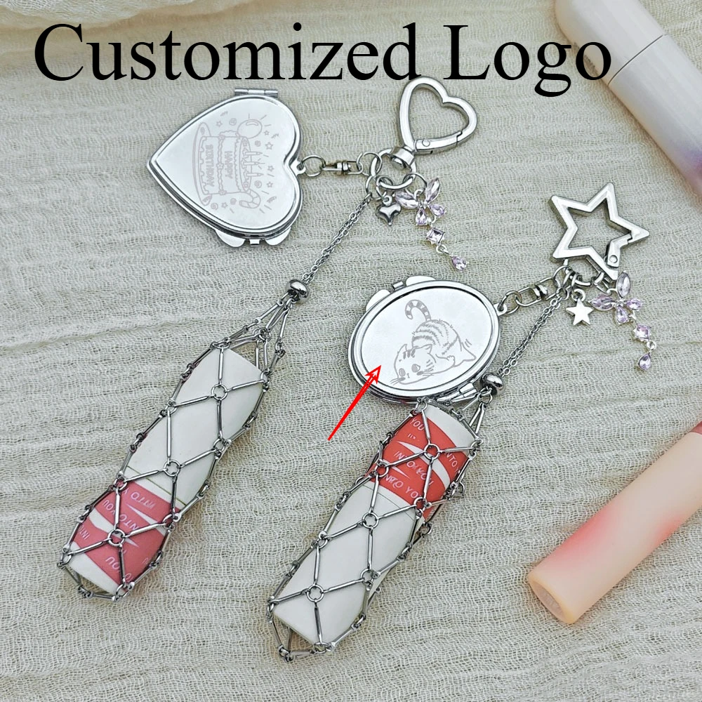 Portable Makeup Pouch With Mirror Lip Balm Holder Keyring Protective Cover Gift Trendy Metal Net Lipstick Keychain Idea