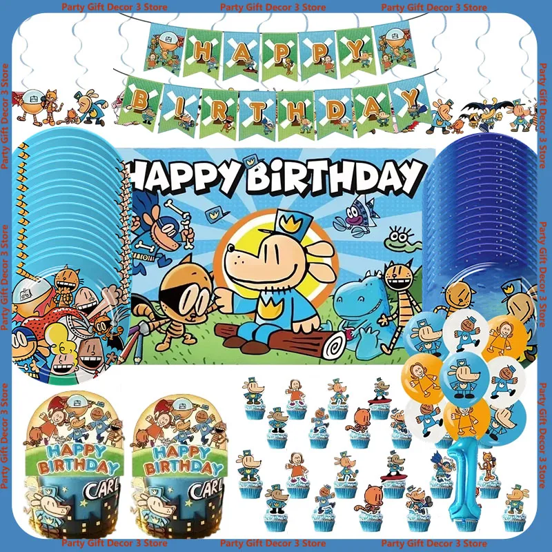Dogman Theme Theme Birthday Party Decorations Cute Cartoon Balloons Dog Man Disposable Tableware Banner Backdrop Birthday Gift