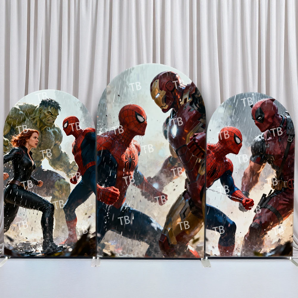 TB Marvel-themed Superheroes Arch Backdrop Cover for Boys Birthday Party Decoration Photograph Background Wall Baby Shower Props