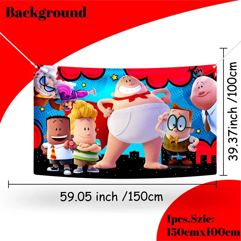 Vibrant Captain Underpants Backdrop Washable Fabric Foldable+Portable for Indoor Outdoor Kids Party Birthday Superhero Events