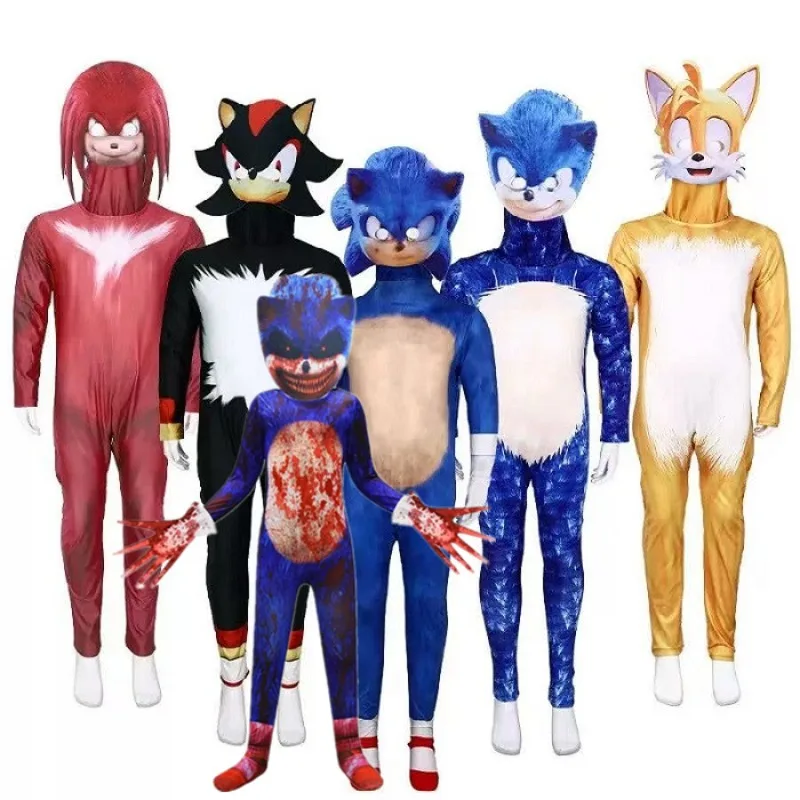 Boys Fast Game Shadow Knuckles Tails Hedge Cosplay Costume Child Bloody Flash Hero Costume kids Halloween Cosplay Jumpsuit+Mask