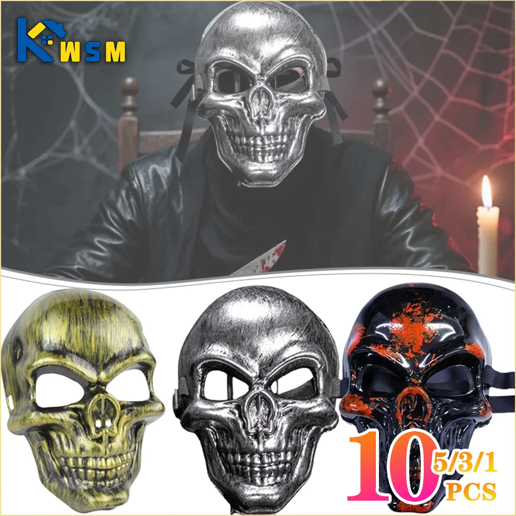 1-10PCS Halloween Horror Skull Mask Creepy Laughing Ghost Face Gold Silver Costume Prop for Party Cosplay Haunted House Decor