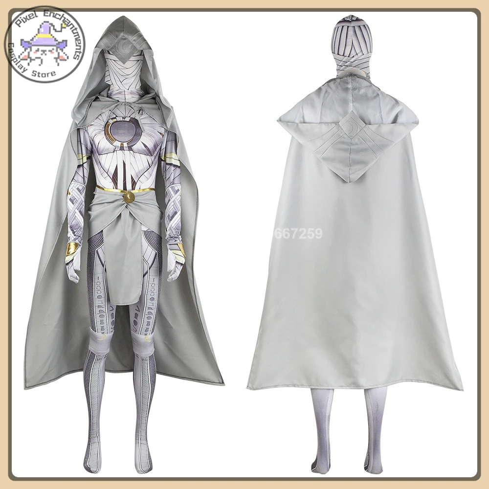 opular Moon Knight Role Playing Costume Fashion Silver Suit Cape Jumpsuit Mask Full Set Halloween Comic Con Party Outfit (Adult