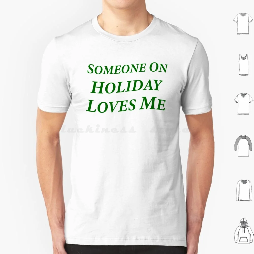 Someone On Holiday Loves Me ( Romantic , Aesthetic & Wavy Green Serif Font Text ) T Shirt 6xl Cotton Cool Tee Someone On