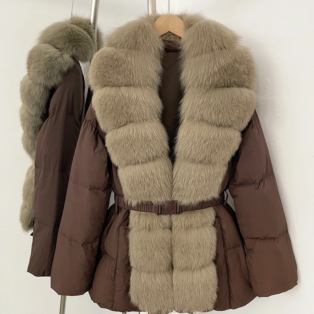 White Duck Down Coat Luxury Natural Fox Fur Collar Down Jacket Casual Parkas Real Fur Outwear Huge 2025 Puffer Jacket Women