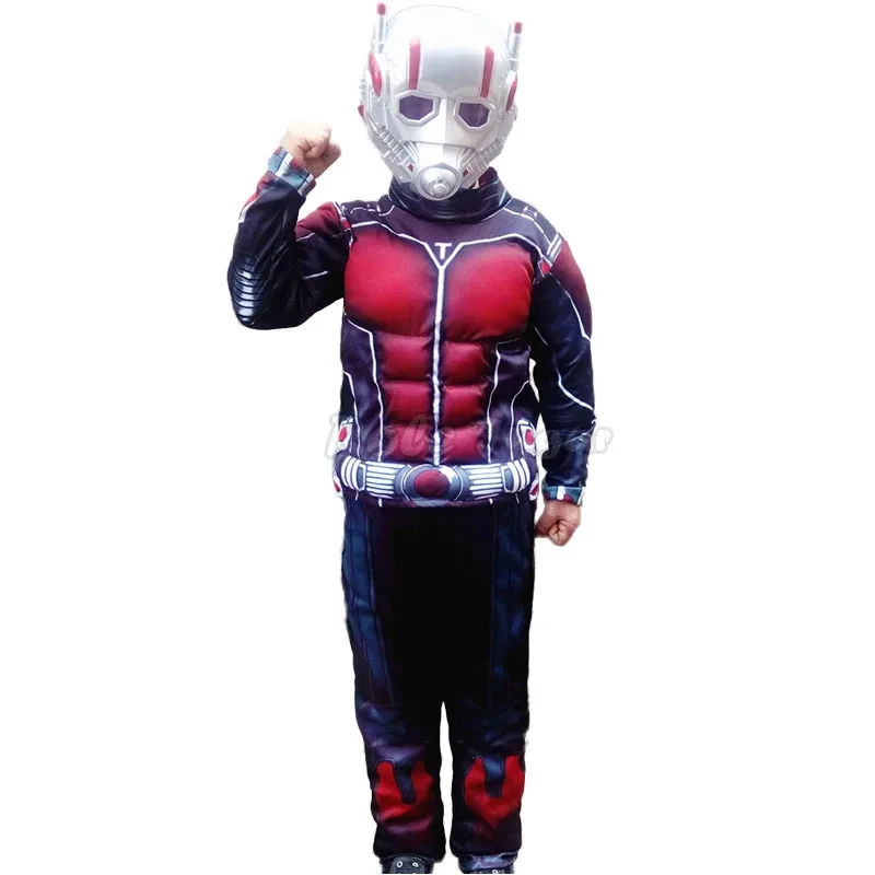 Antman Kids Muscle Jumpsuits Mask Muscle Superhero Party Ant Man 3 Cosplay Costumes Halloween Carnival Outfits Boys Role Cosshu