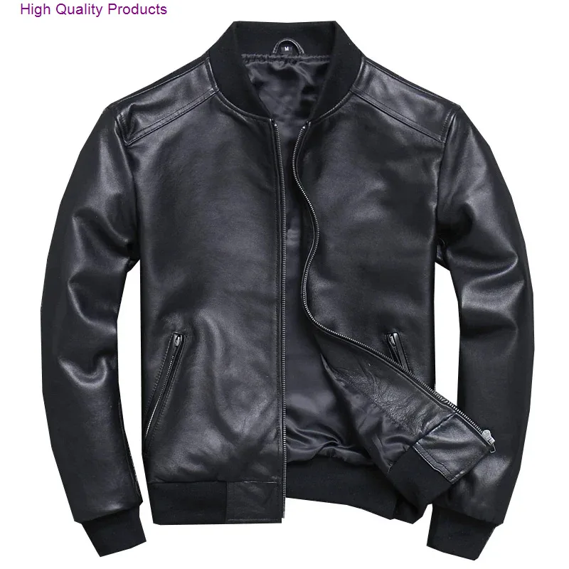 Genuine Black Leather Aviation Bomber Jacket Men Pilot Sheepskin Real Leather Jacket coat short Slim business jacket leather