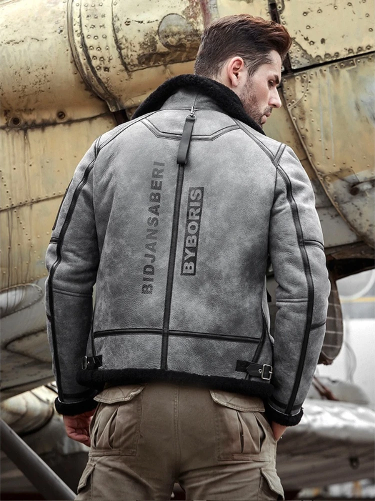 Mens Shearling Jacket Sheepskin Aviator Winter Coat Fur Bomber Leather Jacket B3 Flight Jacket