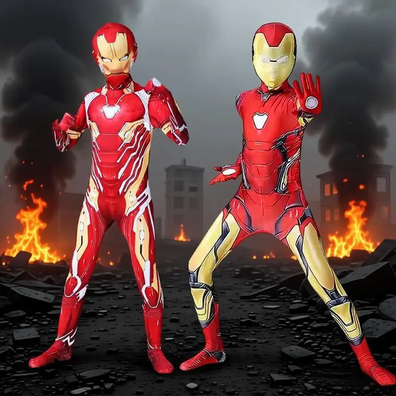 Iron Man Costume for Kids Superhero Costume Cosplay Bodysuit Full Sets with Mask Halloween Costume for Kids