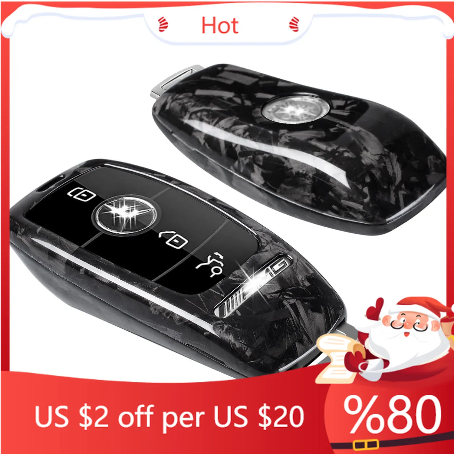 Hot For Mercedes Benz AMG Key fob Cover, Carbon Fiber Key Shell Case Protector For Benz AMG Key Case CLS S-Cla Interior Stickers