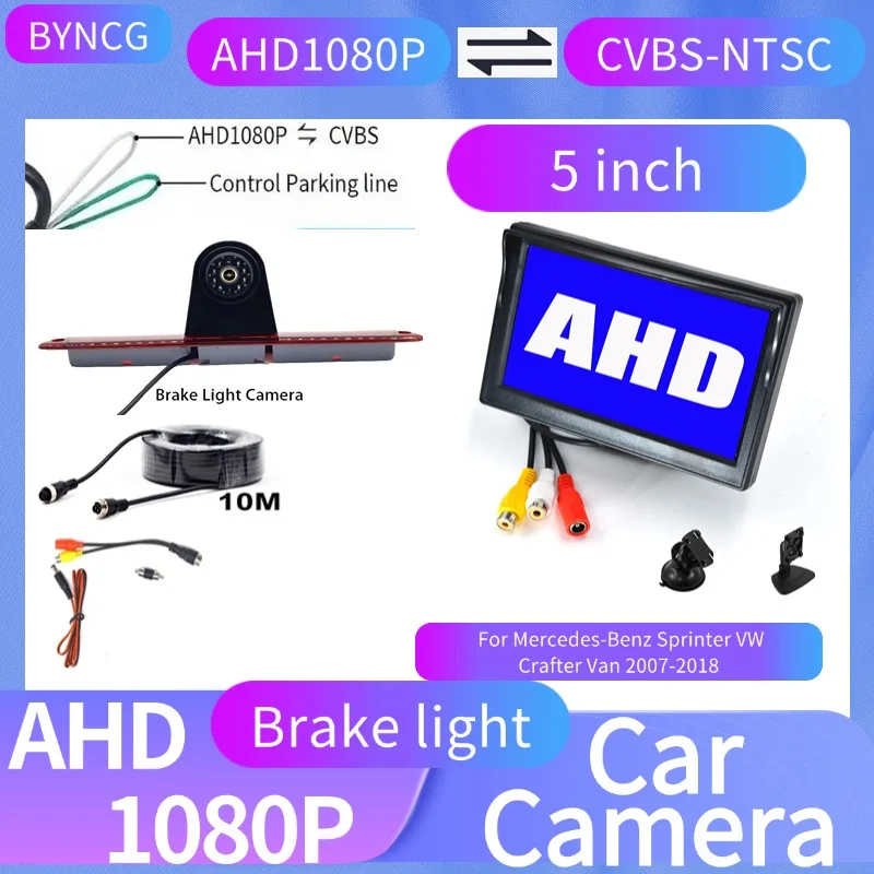 CCD AHD 1080P Car Brake Light Rear View Reverse Camera with 5 inch Monitor For Mercedes-Benz Sprinter VW Crafter Van 2007-2018