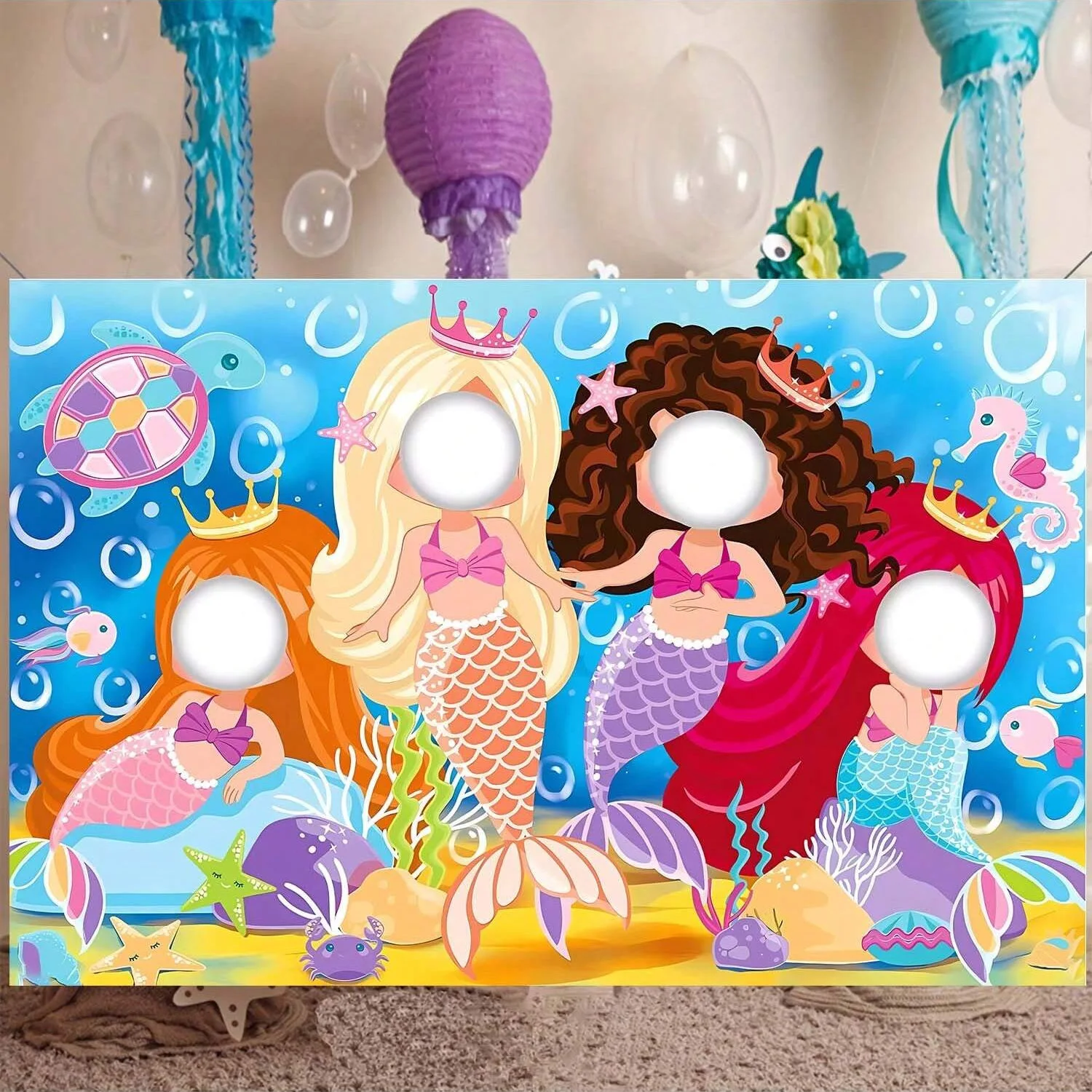 1pcs Mermaid Fun Face Openness Background Cloth Mermaid Theme Birthday Party Photo Decoration Props